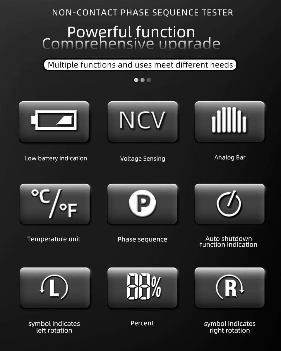 Quickly identifies phase sequene without the need for physical contact, making it a safer and more convenient tool for electrical professionals.