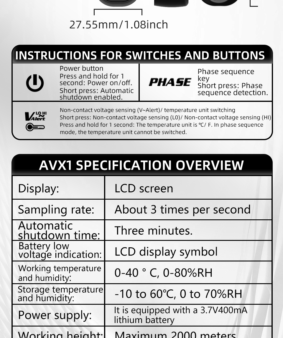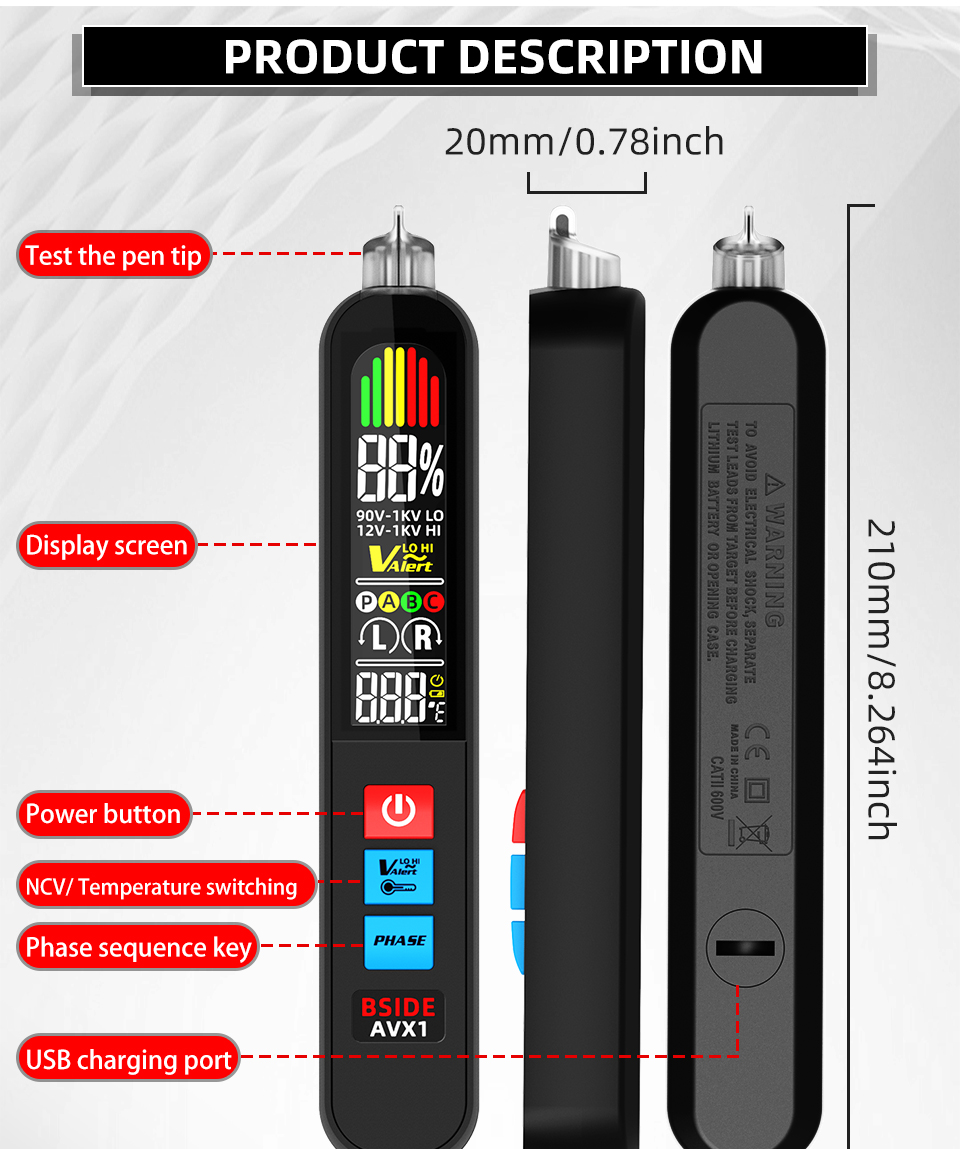 BSIDE AVX1 Phase Sequence Tester with Voltage & Temperature Detection