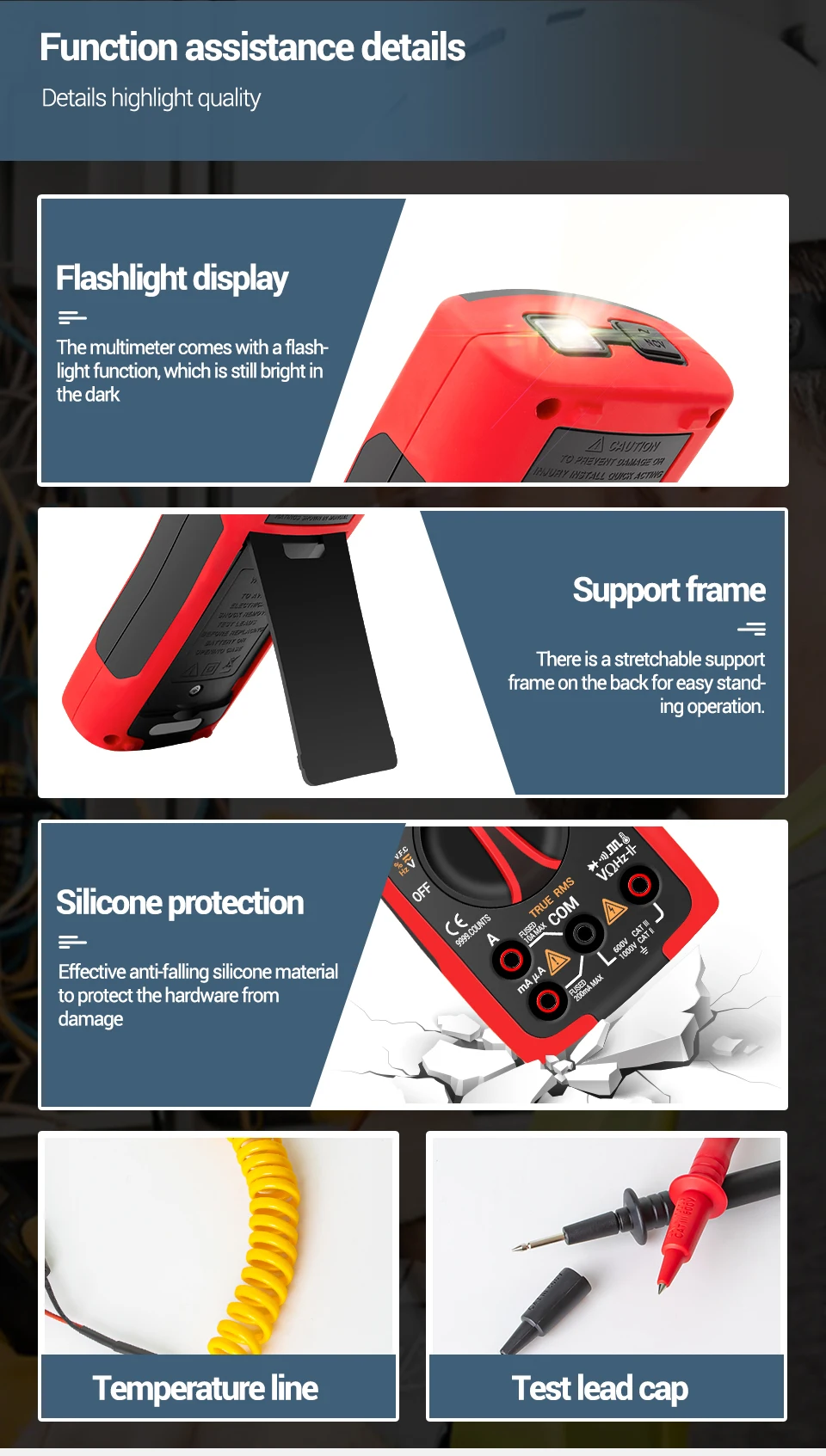 A: BSIDE specializes in high-quality, user-friendly measurement tools like digital multimeters, clamp meters, and smart testers. Our products feature innovative designs, precise measurements, and excellent portability, perfect for professionals and DIY enthusiasts.
