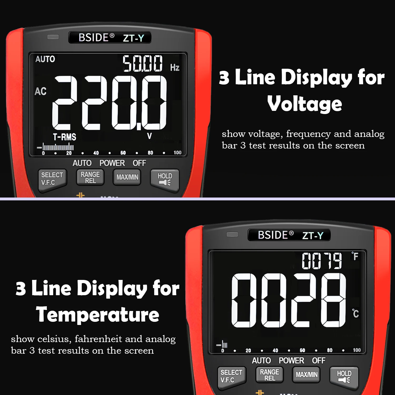 BSIDE ZT-Y True RMS Digital Multimeter 9999 Counts Auto-Range Tester